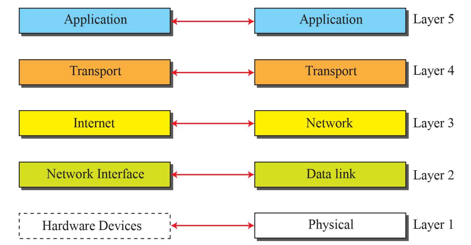 TCP/IP ํ๋กํ ์ฝ์ ๋ช ๊ฐ์ ํ๋กํ ์ฝ์ ์ฌ๋ฌ ๊ณ์ธต์์ ์ฌ์ฉํ๊ธฐ ๋๋ฌธ์, ์ฐ๋ฆฌ๋ ์ถ๋ฐ์ง์์ ๋ค์คํํ๊ณ ๋ชฉ์ ์ง์์ ์ญ ๋ค์คํํ๋ค๊ณ ํ ์ ์๋ค.