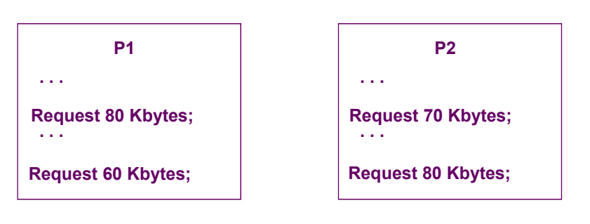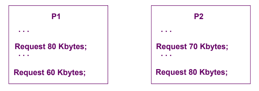 Reusable Resourcesλ νλμ μμμ 곡μ νκΈ° λλ¬Έμ νμ λ μμμ λ νλ‘μΈμ€κ° λͺ¨λ μμ²νμ§ λͺ»νλ μν©μ΄ λ°μνλ€. μλ₯Ό λ€λ©΄, 200 Kbytesμ 곡κ°λ§ λ©λͺ¨λ¦¬μμ μ¬μ©ν μ μλ€κ³ κ°μ ν΄ λ³΄μ.