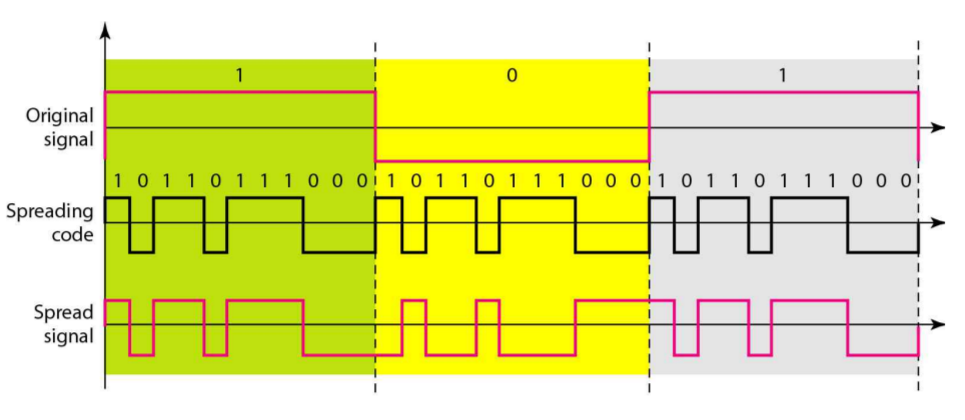 ์ฌ๊ธฐ์ ์๋ณธ ๋ฐ์ดํฐ์ 1bit์ ํด๋นํ๋ Spreading Code์ n ๋นํธ๋ฅผ chips๋ผ๊ณ ํ๋ค.