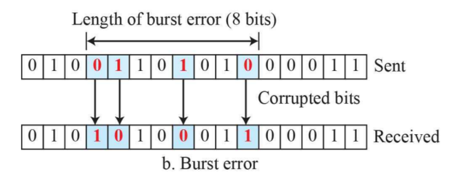 ๋ ๋ฒ์งธ๋ก Burst Error๋ ์ด๋ฌํ Corrupted Bit๊ฐ ๋ ๊ฐ์ด์์ธ ์๋ฌ๋ฅผ ์๋ฏธํ๋ค.