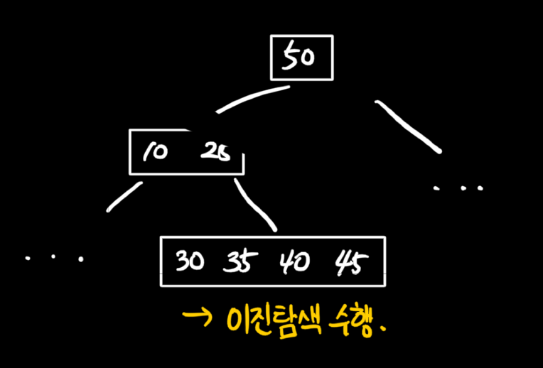- ์ผ๋ฐ์ ์ผ๋ก B-ํธ๋ฆฌ์ ๋ ธ๋๋ ์๋ฐฑ ๊ฐ๊ฐ ๋๋ ํค๋ฅผ ๊ฐ์ง๋ฏ๋ก ๊ฐ ๋ ธ๋์์๋ ์ด์ง ํ์์ ์ํํ๋ค.