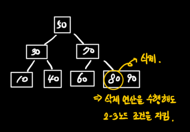 ์ฆ, 2-3 ๋ ธ๋์ ์ญ์ ์ฐ์ฐ์ ํญ์ ์ดํ๋ฆฌ์์ ์ผ์ด๋๊ณ , ์ด๋ฅผ ์ํด ์ด๋/ํตํฉ ์ฐ์ฐ์ ์ํํ๋ค.