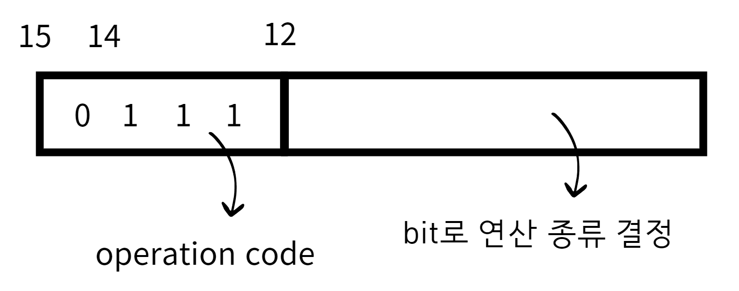- 12~14번째 비트는 operation code 부분이므로, 이를 통해 어떤 종류의 명령어인지 파악한다.