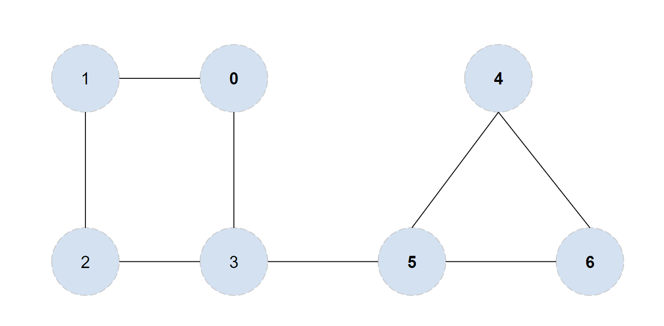 ์ ๊ทธ๋ํ์์ 3๊ณผ 5๊ฐ ๊ฐ๊ฐ ๋จ์ ์ ์ ์ด๋ค. ์ข์ธก์ [0, 1, 2] ์ฐ์ธก์ [4, 5, 6]๊ณผ ๊ฐ์ด ๋ ๊ฐ์ ์ฐ๊ฒฐ ์ฑ๋ถ์ผ๋ก ๋๋๋ ๊ฒ์ ์ง์ ํ์ธํด ๋ณด๋ฉด ์ด๋ฅผ ์ ์ ์๋ค.