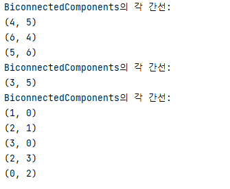 System.out.println("BiconnectedComponents์ ๊ฐ ๊ฐ์ : ");