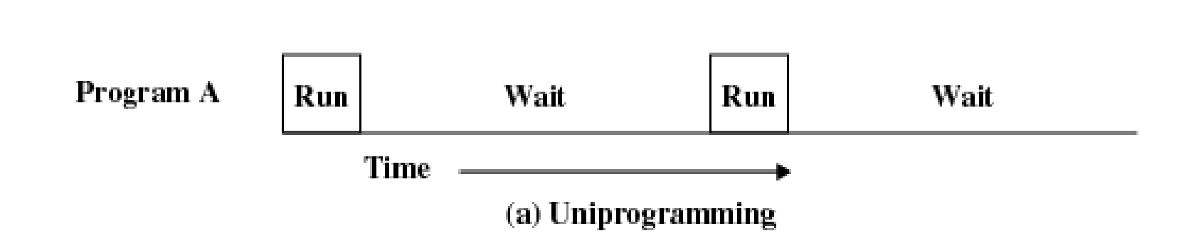์ ๊ทธ๋ฆผ์ Uniprogramming์ CPU์ ๋์ ๋ฐฉ์์ ๋ํ๋ธ ๊ฒ์ด๋ค.