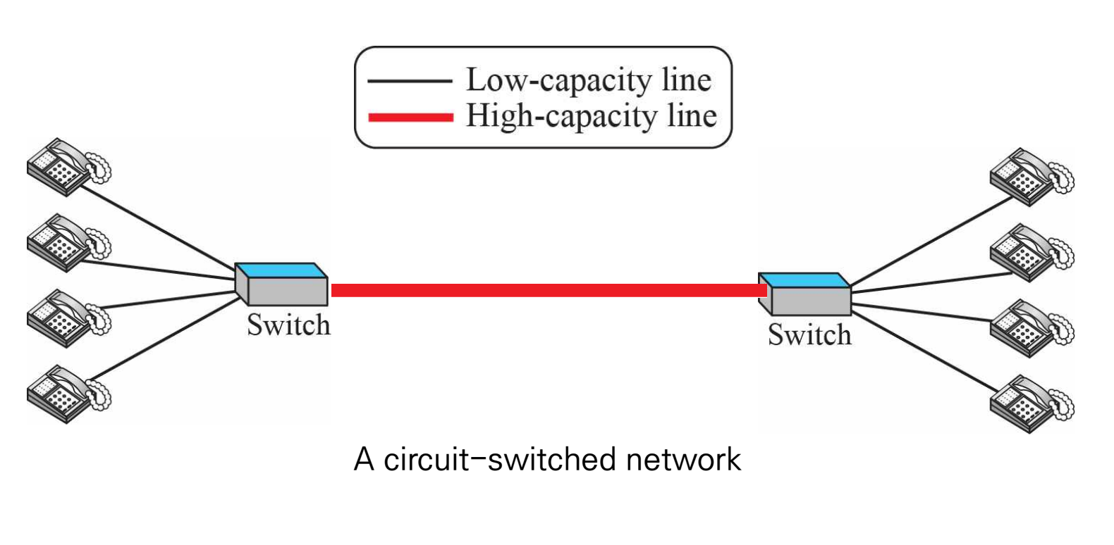 _Circuit Switch_์ ์์๋ฅผ ์ดํด๋ณด์. ๋ง์ฝ ๋๊ตฐ๊ฐ๊ฐ ์ ํ๋ฅผ ํ์ฌ ๋ฐ๋์ชฝ ์ฌ๋๊ณผ ํต์ ํ๋ค๊ณ ํ๋ค๋ฉด, ์ด ํ์ ์ ์ด๋ฏธ ์ฌ์ฉ ์ค์ด๊ธฐ ๋๋ฌธ์ ์ฌ์ฉํ ์ ์๋ค.